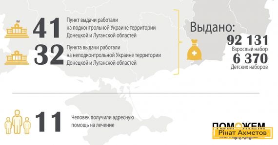 ИНФОГРАФИКА. Порядка 100 тысяч мирных жителей Донбасса получили помощь от Гумштаба Ахметова на прошлой неделе