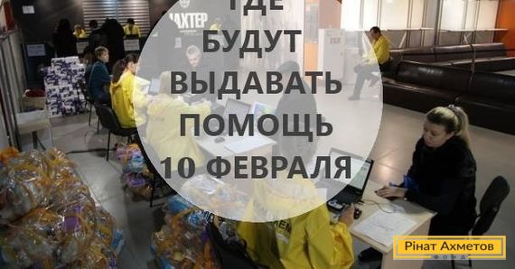 Информация о выдаче гуманитарной помощи Штаба Ахметова в Донецке и близлежащих городах на 10 февраля