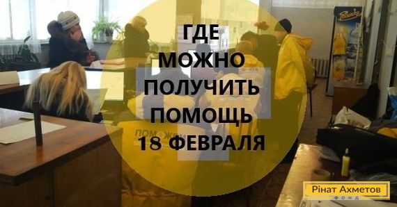 Информация о выдаче гуманитарной помощи Штаба Ахметова в Донецке и близлежащих городах на 18 февраля
