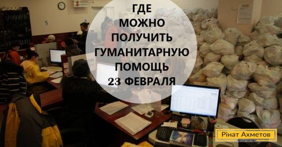 Информация о выдаче гуманитарной помощи Штаба Ахметова в Донецке и близлежащих городах на 23 февраля