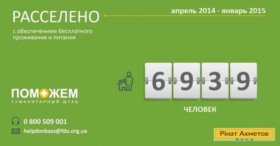 С августа 2014 по январь 2015 Гуманитарный штаб Рината Ахметова помог с расселением 6939 мирным жителям