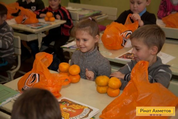 11 ноября подарки от капитана «Шахтера» начали получать учащиеся Буденновского и Пролетарского районов. До конца недели наборы мандаринов будут доставлены в школы всех районов Донецка. В общей сложности подарки от Дарио Срны получат 23 143 ученика младших классов, то есть абсолютно все малыши, которые сейчас находятся в городе. Кроме того, каждому ребенку Дарио передал специальную открытку.