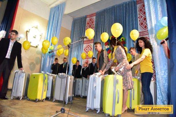 Выпускникам интернатов Фонд Рината Ахметова сделал полезный подарок – целый чемодан вещей, необходимых для обустройства быта: посуда, постельное белье, полотенца и другие вещи. «Кастрюля, сковородка – будет в чем готовить! Полотенца, постельное белье – то, что надо. Это полезные подарки. Мы, когда выпускаемся, у нас нет ничего. Ни посуды, ну могут дать, только какое-то постельное. А кушать надо, на чем готовить. Спасибо за это!», – сказала Нина.