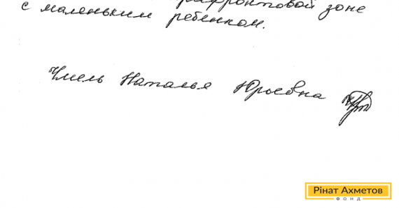 В адрес Рината Ахметова пришло письмо от переселенки из Песок. Наталья пишет: «Хотелось бы выразить Вам огромное человеческое спасибо! За то, что не бросаете нас в столь сложной ситуации. Я переселенка из поселка Пески, проживаю в Нетайлово, и без Вашей помощи просто не смогла бы выжить в прифронтовой зоне с маленьким ребенком».