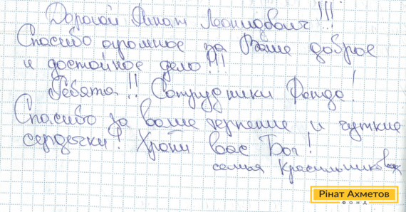 Такое письмо нам прислала семья Красильниковых из Енакиево. Спасибо им за теплые слова!