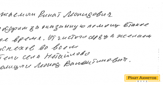 В адрес Гуманитарного штаба пришло письмо из Нетайлово. Он пишет: «Благодарим за оказанную помощь в такое нелегкое время. От чистого сердца желаем вам успехов во всем».