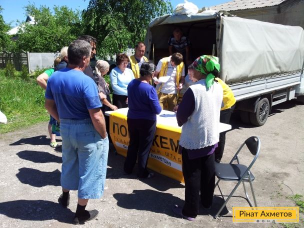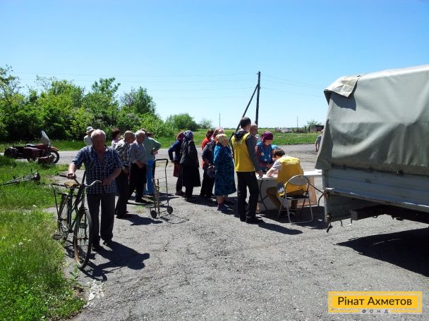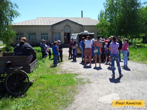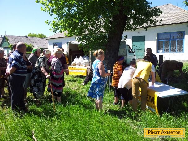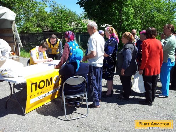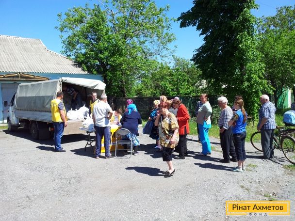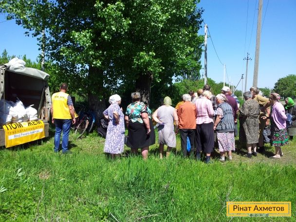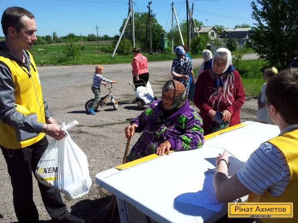 Жители отдаленных сел Амвросиевского района Донецкой области получили продуктовые наборы от Штаба Рината Ахметова
