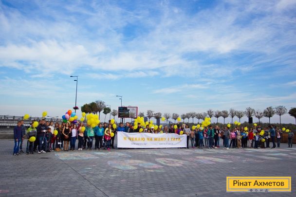 Сегодня, 30 сентября 2016 года, в Киеве состоялся флешмоб «Ми чекаємо на маму і тата!» с участием 100 детей-сирот и детей, лишенных родительской опеки, из интернатов Киевской, Житомирской и Черниговской областей. Флешмоб, приуроченный ко Дню усыновления, провели Министерство социальной политики Украины и Благотворительный фонд Рината Ахметова.