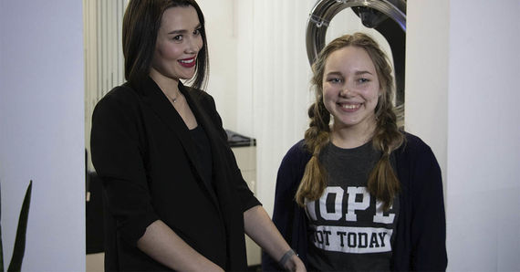 Амбассадор Фонда, телеведущий Максим Сикора привез Юлю в учебный центр, где ее ожидали парикмахер и модель.