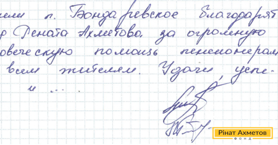 В адрес Гуманитарного штаба Рината Ахметова пришло письмо от жителей поселка Бондаревское. Они благодарят Штаб за «человеческую помощь пенсионерам и всем жителям».