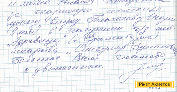 В адрес Рината Ахметова и Гуманитарного штаба пришло письмо от жительницы Макеевки. «Хочу поблагодарить Штаб и лично Рината Ахметова за помощь моему внуку, 9-летнему Игорю, в получении лекарства», - написала бабушка мальчика, страдающего бронхиальной астмой.
