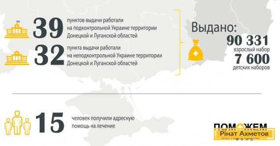 Порядка 98 тысяч человек получили помощь от Штаба Ахметова на минувшей неделе. ИНФОГРАФИКА