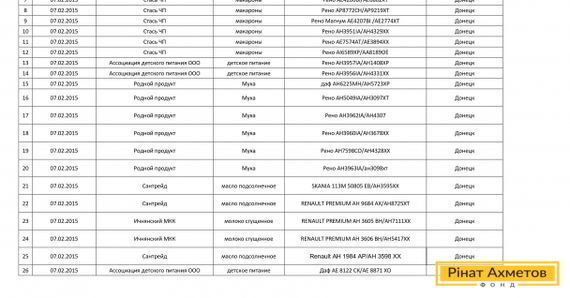Реестр третьей автоколонны 15-го Гуманитарного рейса Рината Ахметова. Автоколонна выедет 7.02.2015