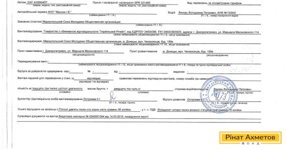 Сертификаты качества и товарно-транспортные накладные на груз, который везет в Донецк автоколонна 16-го Гуманитарного рейса Ахметова 14.03.15.
