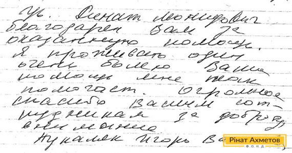 Такое письмо от жителей Донецкой области, которым оказывает помощь Гуманитарный штаб Рината Ахметова.