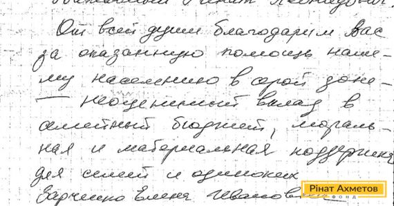 Гуманитарный штаб продолжает получать письма от населения Донбасса. На этот раз слова благодарности в адрес Рината Ахметова прислали жители «серой» зоны.
