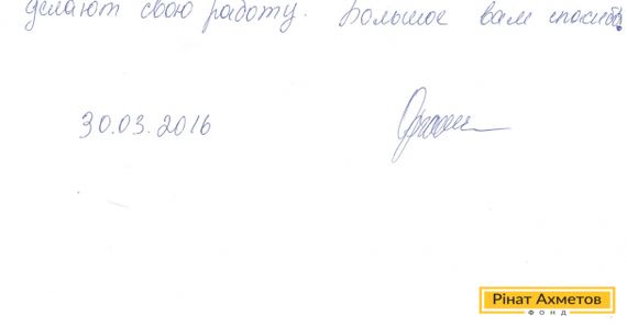 В адрес Рината Ахметова и волонтеров Гуманитарного штаба пришла благодарность от жительницы Горняцкого района Макеевки за наборы выживания, которые она регулярно получает на пункте выдачи.