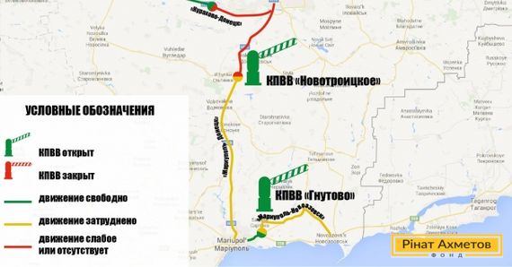 «Очередь на Мариуполь около 40 машин, движется очень медленно. На Донецк свободно».