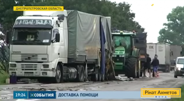 Вчера автоколонна Гуманитарного штаба Рината Ахметова попала в аварию. Это произошло по пути в Донецк, недалеко от Павлограда. Зерновоз, выехавший на встречную полосу, столкнулся с машинами Гуманитарного рейса. На место происшествия прибыли сотрудники милиции. Они оформили ДТП по статье № 124.