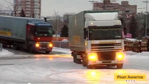 ВИДЕО. Как Гуманитарный рейс Рината Ахметова заезжал в Донецк, 09.01.2015