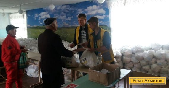 Несмотря на непрекращающиеся боевые действия на Востоке Украины, Гуманитарный штаб Рината Ахметова продолжает оказывать помощь мирным жителям. Продуктовые наборы выдаются жителям «серой зоны» и прифронтовых городов. В населенных пунктах, которые находятся под постоянными обстрелами, продолжают работать стационарные пункты выдачи.