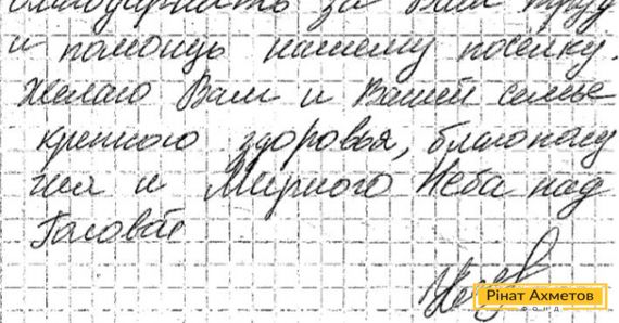 «Желаю вам благополучия и мирного неба над головой», – говорится в письме.