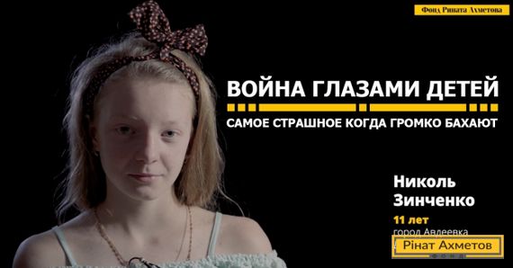 По данным ООН, более 240 тысяч ребят живут вдоль линии соприкосновения на востоке Украины и каждый день рискуют попасть под обстрелы. С 2015 года психологи Фонда Рината Ахметова оказывают квалифицированную помощь детям Донбасса. Иногда сами дети рассказывают о пережитом на камеру. С разрешения ребят и их родителей Фонд оформил некоторые видеомонологи в серию роликов под общим названием «Война глазами детей».