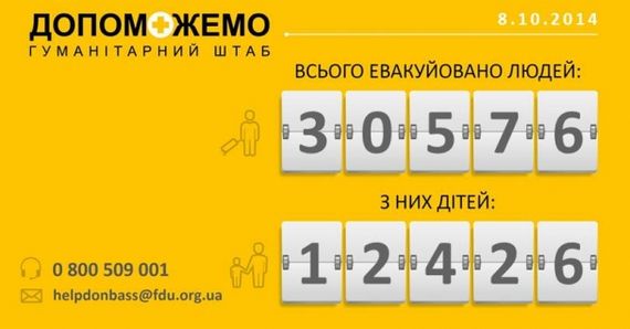 По состоянию на 8 октября 2014 года, Гуманитарный штаб при Фонде Рината Ахметова эвакуировал на Донбассе в целом 30 576 человек, из них 12426 детей.