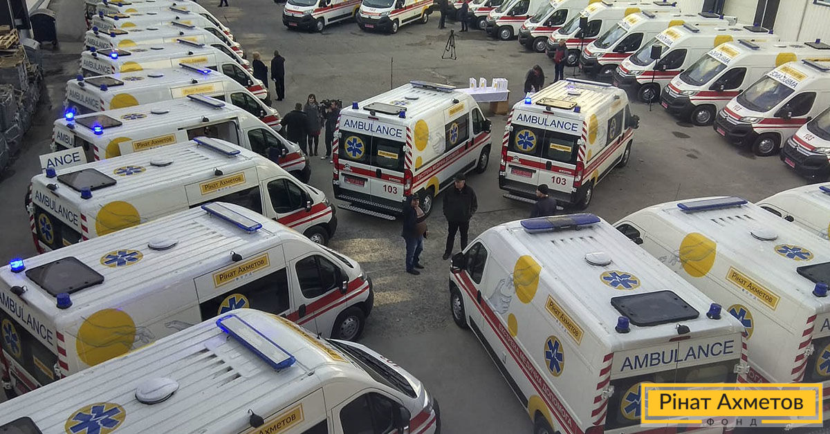 Впервые за 28 лет независимости страны Ринат Ахметов – единственный благотворитель, который передал медикам такое количество суперсовременных машин скорой помощи. Благодаря двумстам автомобилям скорой помощи, которые распределят в больницы страны, где особо остро нуждаются в транспорте, будут спасены жизни более миллиона украинцев.